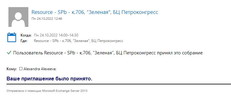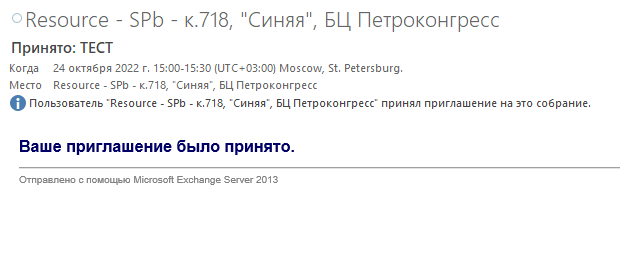 6) Важно убедиться, что поступило письмо от переговорной комнаты, о её успешном бронировании.