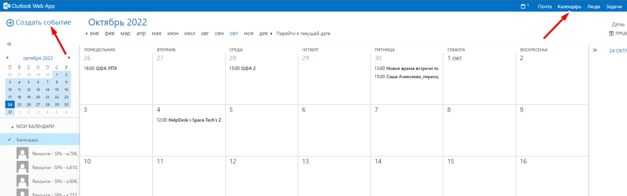 7) Теперь данная встреча появиться в календаре событий участников. Им также поступит письмо с просьбой Принять, либо Отклонить приглашение.