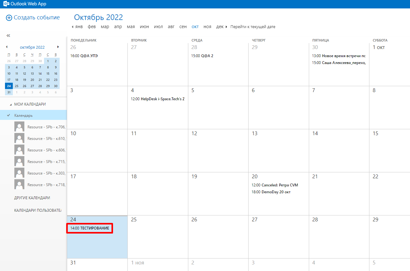 7) Теперь данная встреча появиться в календаре событий участников (при наличии).