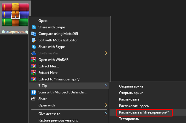 5) Разархивировать файл с конфигурацией.