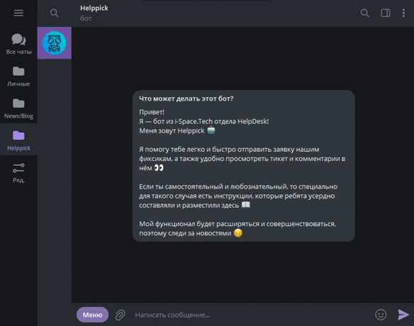 Далее ты можешь просматривать все комментарии и производимые действия, в твоём оставленном обращении в наш отдел. 😊