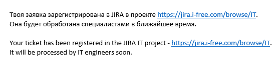 Дожидаемся автоматического ответа о успешном создании заявки.